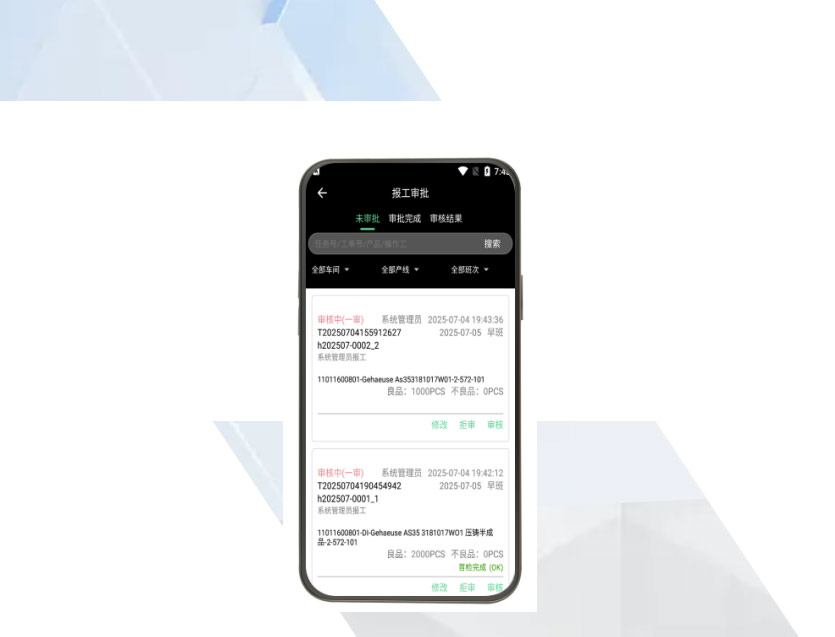 建立现场人员报工数据的审批稽核机制,通过双重验证确保数据准确性